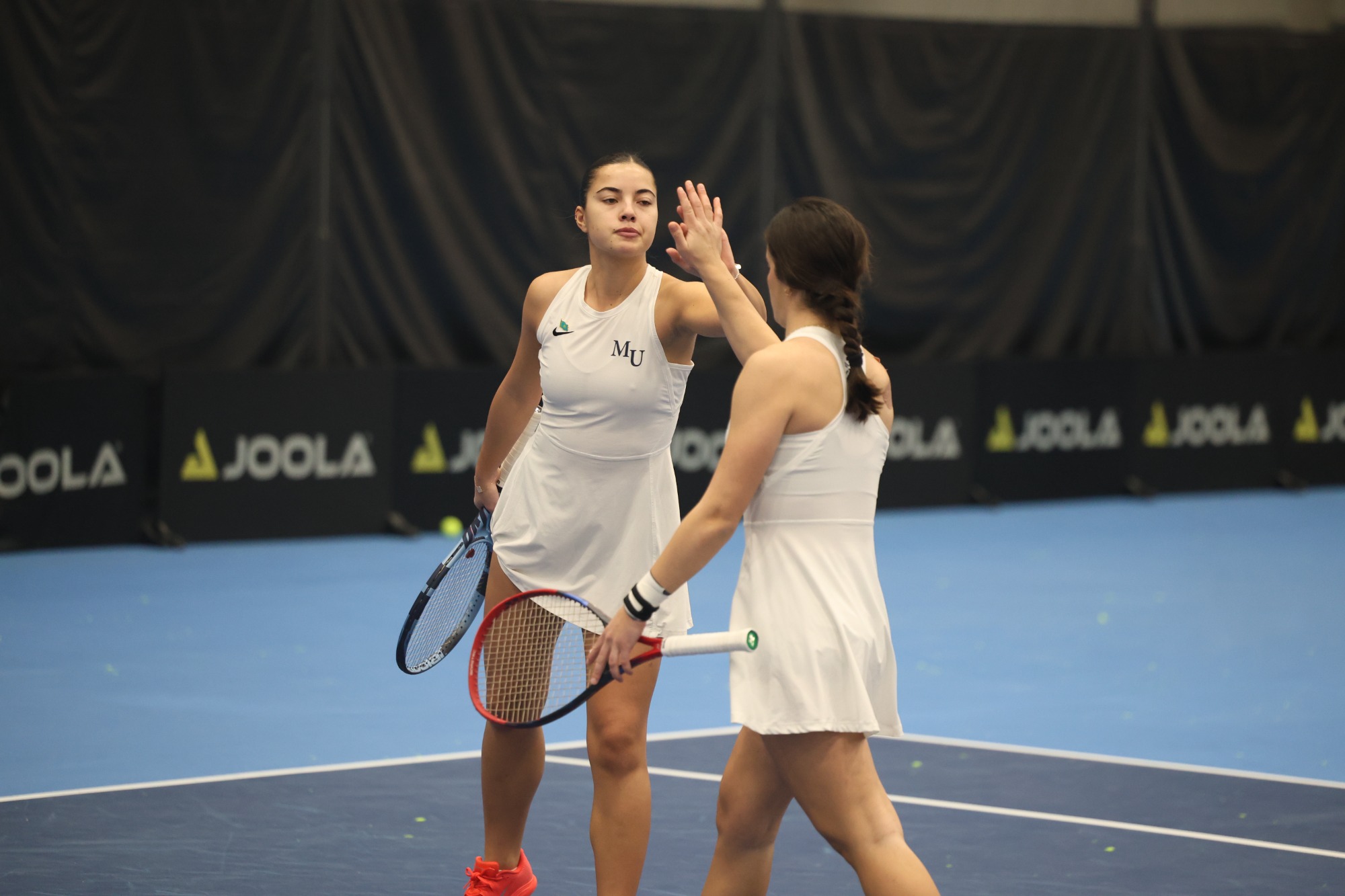 The Knights went into singles play needing three wins to clinch the match, and got a quick win at the No. 4 spot as Koerner defeated Rinkenberger in straight sets 6-0, 6-0. Savarino got the Knights' the third point of the match after taking down Calderone 6-1, 6-1 at the No. 5 spot. Chrome finished things off for Marian by downing Heckaman 6-1, 6-2 at the No. 3 spot. Joelle Leihbacher and Bopst's singles matches went unfinished, but both were leading in their respective matches. Dusele's match also went unfinished as she dropped the first set 7-5 and was even 1-1 in the second.