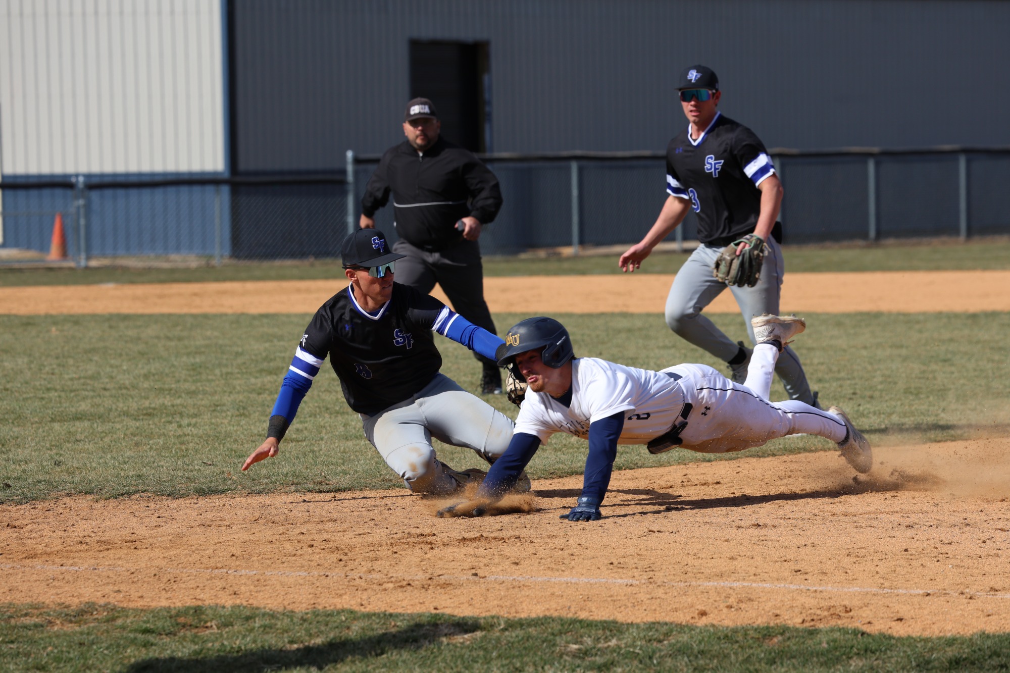Damien Wallace followed the offense's lead with the quick start, striking out the side in the bottom of the first inning. The Maple Leafs would strike back in the bottom of the second as they picked up three hits with two outs, scoring two runs off Wallace. The righty got out of the jam with a groundout to his infield to end the second, and then benefited from a double play to get out of the third inning by facing the minimum. Marian held their 3-2 lead going into the bottom of the fourth, as Wallace picked up the first two outs with flyouts to the outfield, however back to back errors prolonged the inning allowing Goshen to score an unearned run.