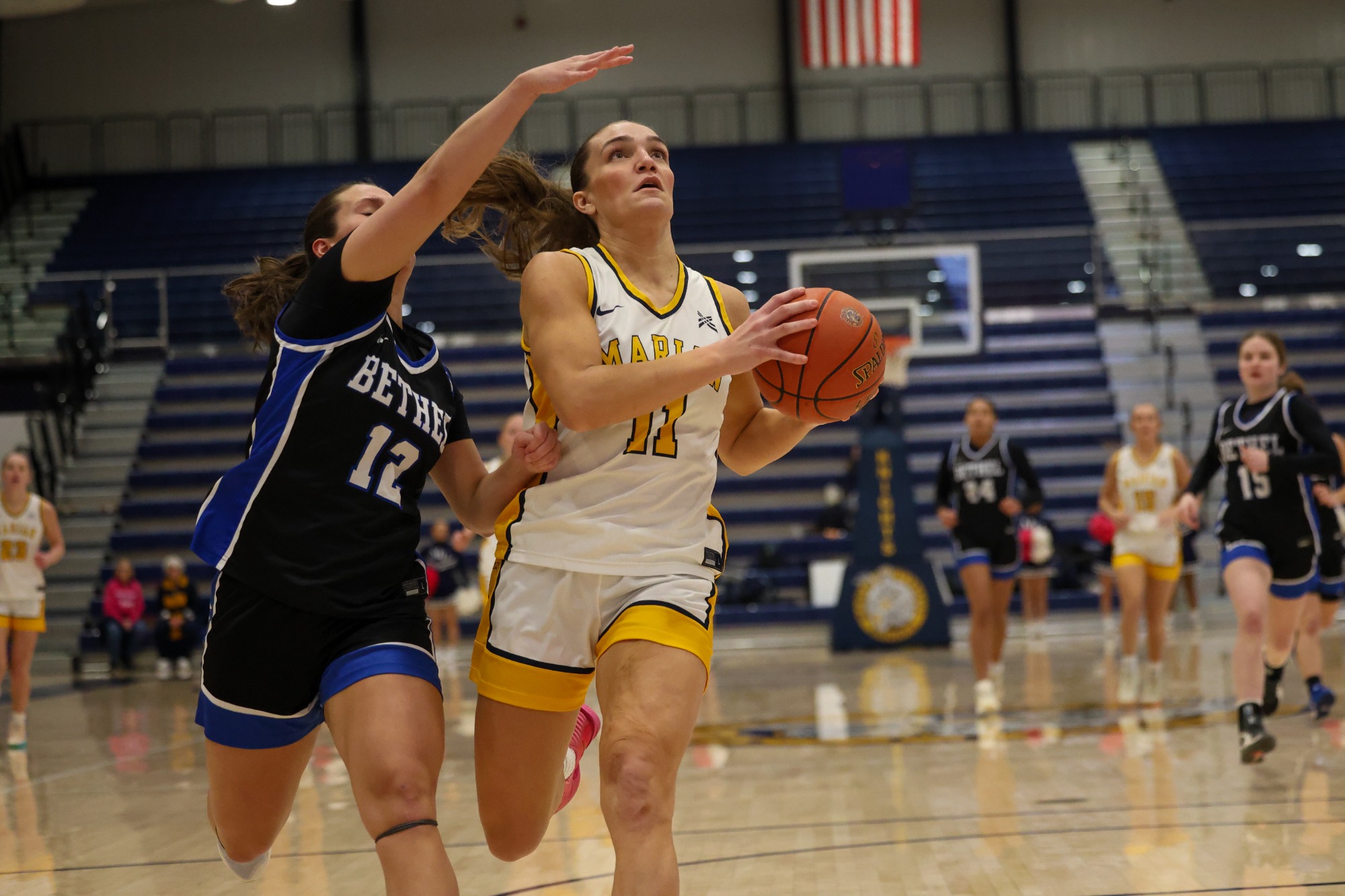 Abbey McNally, the program's single season rebound record holder. Marian is one of four teams in the field with a previous NAIA National Championship to their names, and are 23-8 overall in their program history on the final stage.