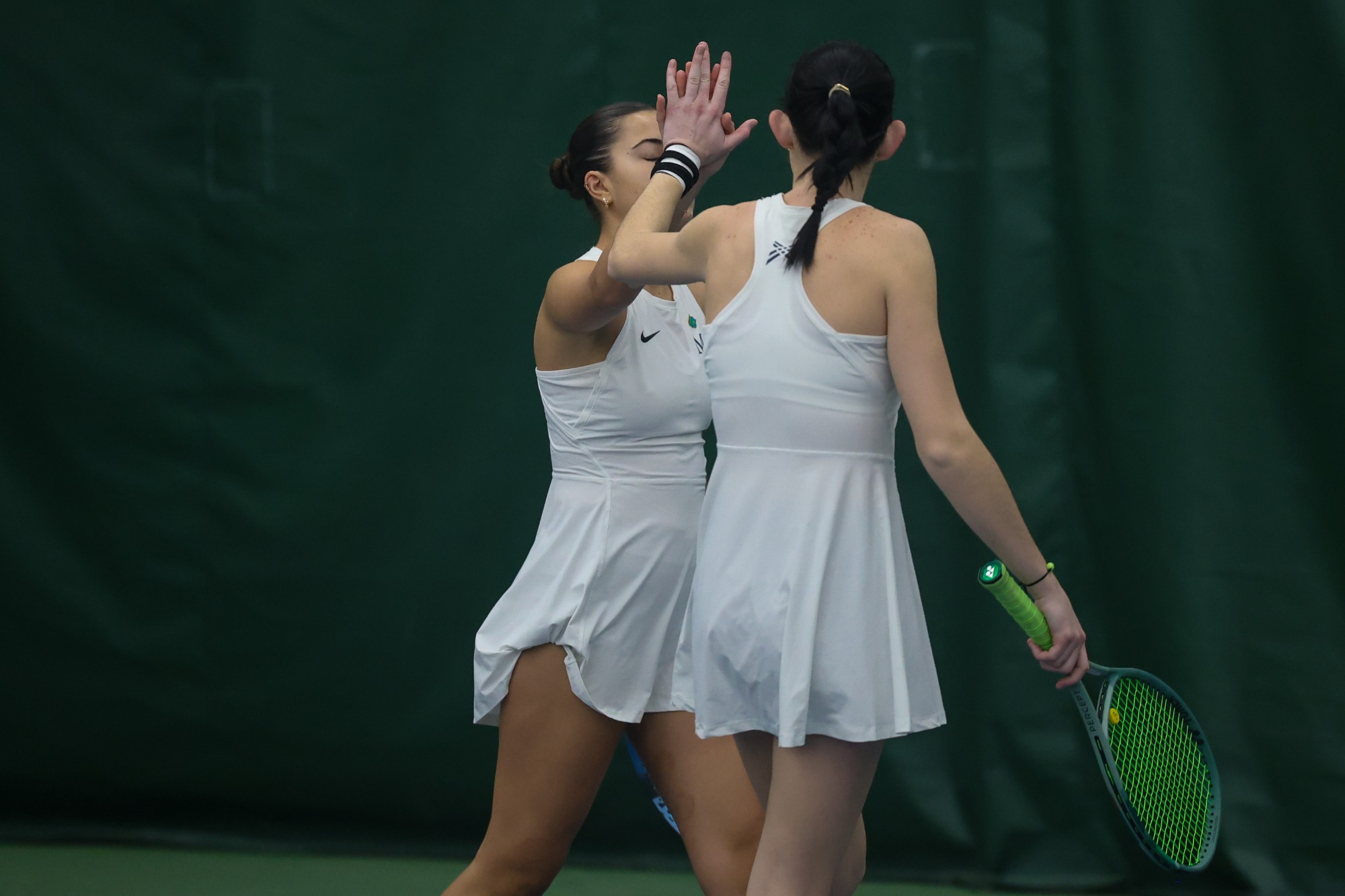 The Knights began the day with a quick clinch in doubles, winning the first point of the day with a pair of wins from the No. 2 and No. 3 pairs. The pairings of No. 2 team